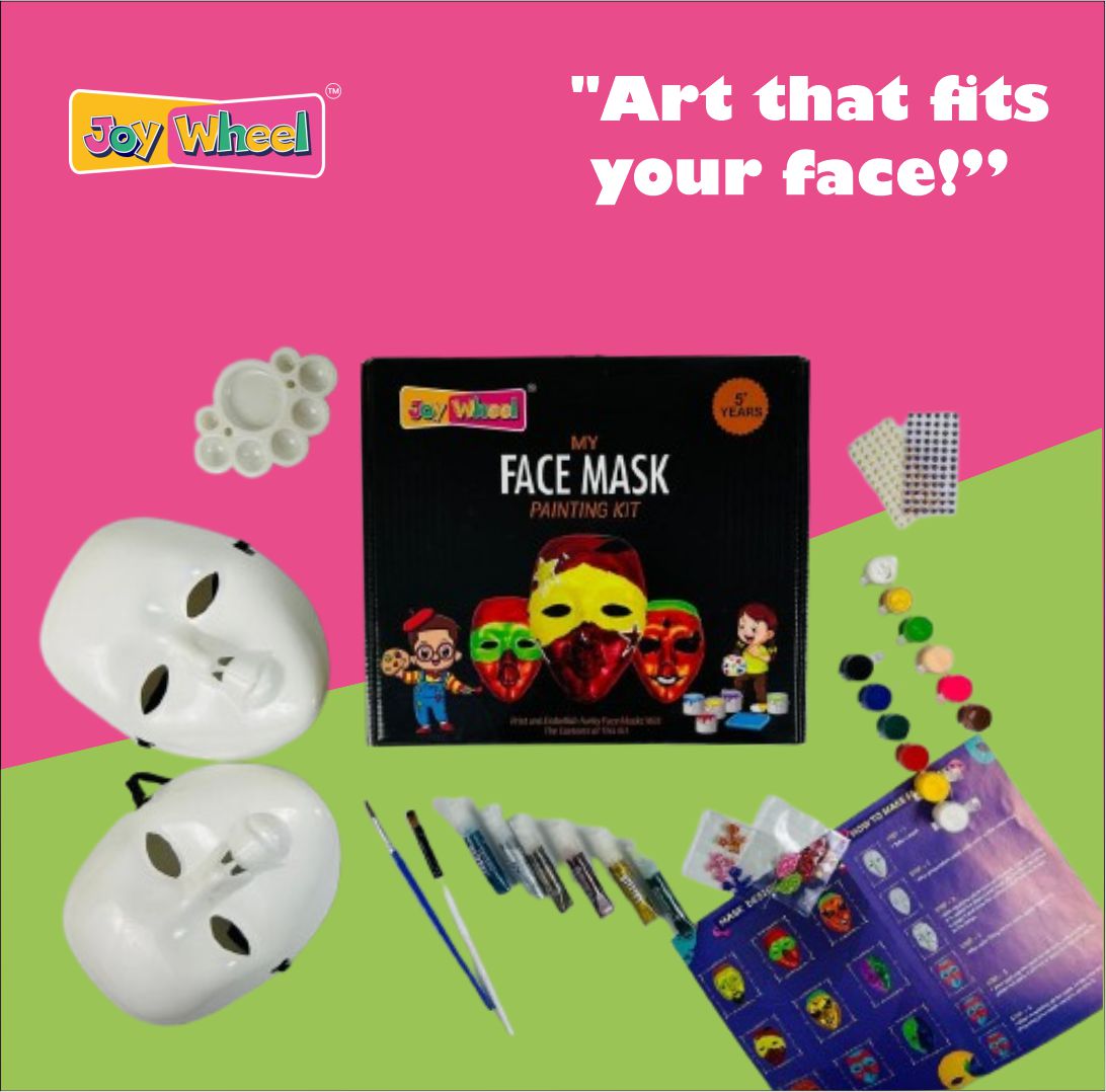 Let your child’s imagination run wild with the Joy Wheel Face Mask Painting Kit—the ultimate DIY art activity for kids aged 5 and up. This all-in-one set includes 5 sturdy blank masks, 12 vibrant, non-toxic tempera paints, and a soft-grip paintbrush that’s perfect for little hands.